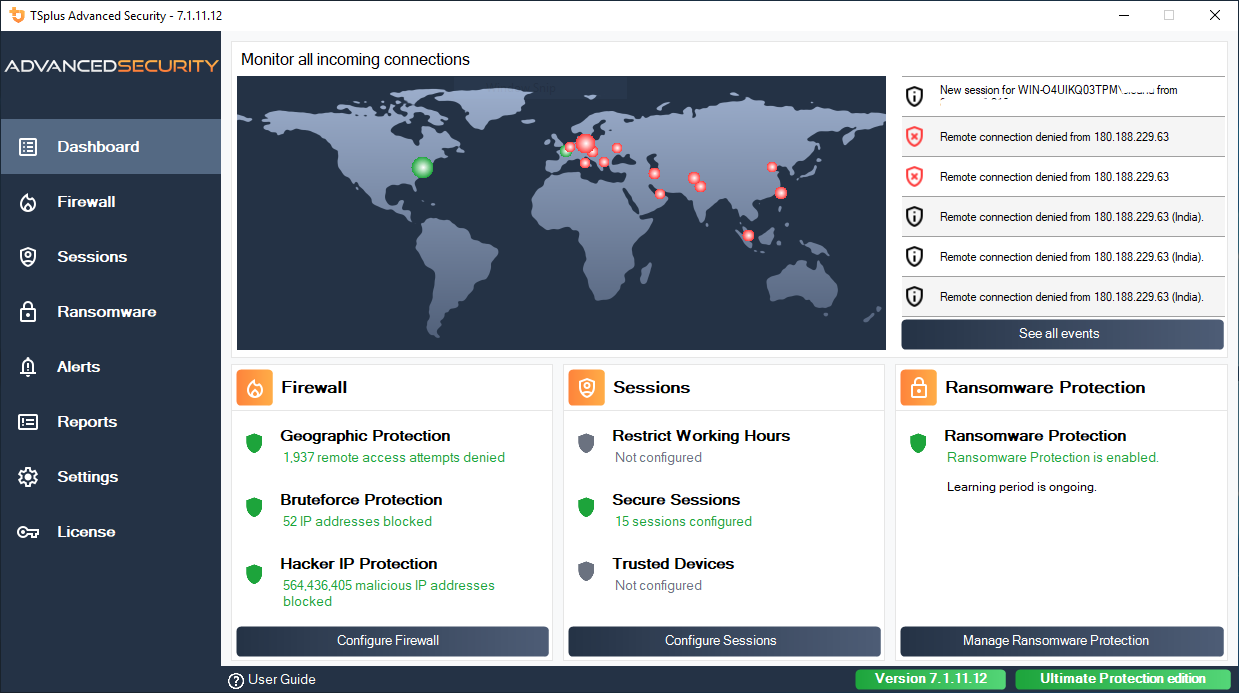 Obtain the best value-for-money cybersecurity software out there. TSplus Advanced Security comes with permanent licenses that last for life.